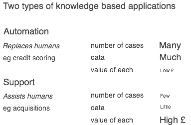 Operational decisions are typically many and small with sufficient prior data on which to build a knowledge base. This is the field of data-mining and neural networks. Knowledge based systems for tactical decision making can be automated taking human understanding out of the loop except at the boundaries e.g. credit scoring.